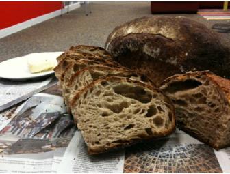 You're gonna love it! Four freshly baked, large loaves of all-organic whole-grain flours and natural sourdough starter. Customize your loaves or pick from our favorites: country white, polenta, levain, or whole-wheat pecan raisin. Moist and chewy on the inside, carmelized and crusty on the outside. Delivered hot from the oven to Town School on one to four mornings of mutual arrangement.