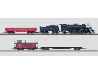 Prototype: 1 Northern Pacific Railway "Pacific" steam locomotive with a tender. 1 Spokane, Portland and Seattle Railroad flat car. 1 Great Northern Railway gondola. 1 Northern Pacific Railway caboose.