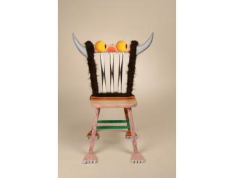 While in the process of designing this chair, Christina decided that she wanted it to relate to her own childhood. As a child, her parents heavily encouraged creativity and imagination. Reading was also a big part of her life during her childhood, so she wanted to choose a character from a popular children’s book. She chose to create the main creature from the book Where the Wild Things Are. Any child can relate to this timeless book that captures the peculiar imagination of a child.
