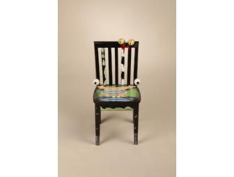 Jennifer's chair was inspired by one of her favorite childhood cartoons. Ahh Real Monsters was a Nickelodeon show based on three monsters Krumm, Oblina, and Ickis who are attending a monster academy. At the academy they learn the proper way to scare humans. This chair just represents one of the many quirky things in her childhood which has shaped her into who she is today. She loves anything that is out of the ordinary, and shows a different perspective to things we feel like we understand.