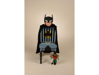 Our instructor suggested a theme of superheroes or fairy tales. Kathy chose superheroes, specifically Batman, because as a child, she loved to read comic books. She had subscriptions to Superman, Superboy, Batman and Metal Men! The cape and Robin doll are detachable.