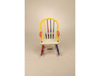 Nick's chair was inspired by his own personal childhood. As a child, his mother babysat all of the children in our neighborhood. So whenever he thinks of children, or his life as a child, the first thoughts that come to mind are of arts and crafts supplies.