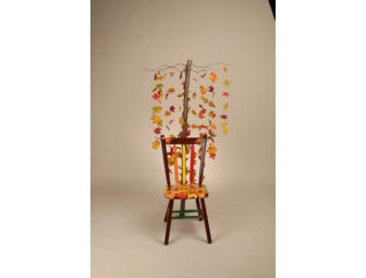 Media: Oil and acrylic paints, wire, fishing line, decorative leaves, recycled tree base