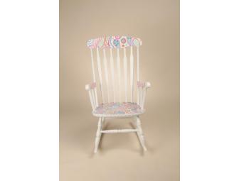 Dinny wanted to paint paisley, and got her inspiration from a vintage Emilio Pucci dress. She chose a rocking chair for a girl’s room and named the chair after her new granddaughter, Lily. Dinny majored in art at Carrol College and has her work displayed across the U.S. She specializes in murals, hand--painted furniture and dog portraits.