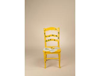 Ann found inspiration for her chair from this summer’s abundance of flowers. Ann owns a gallery in Zionsville and has studied at the Indianapolis Art Center with many well known artists, as well as participated in workshops with national and local artists. Ann’s artwork has been accepted in the Indianapolis Art Center, Whitewater Valley, Minnetrista and Irvington Presents juried shows. She has received many Honorable Mention Awards at art shows, including a Best of Show in Metalsmithing.