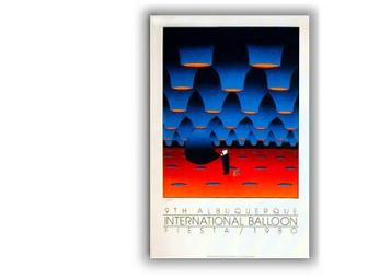 Second in the series by MAAN, a collaborative group of three artists under contract to other publishers at the time. The pseudonym was chosen from Shakespeare's Much Ado About Nothing in protest of the commercialization of the art world where name recognition and signature had become more important than the art itself. The artists portray a receding field of gradated balloons being inflated by a man with a head in the shape of New Mexico. An artist-signed "fine art" edition (without lettering) was released this year. A fine art edition would not be published again until the 20th anniversary of the series in 1998. Published as a limited-edition serigraph in an artist-signed edition of 500 numbered prints; an unsigned edition of 5,000 numbered prints; and a fine art edition of 300 artist-signed and numbered prints. 20" x 30". Numbered 2516/5000.