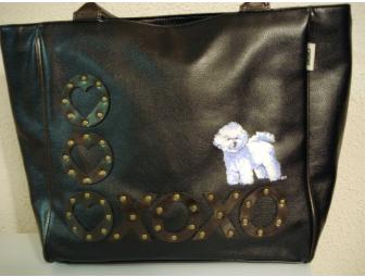 XOXO Vinyl Tote or Purse with Handpainted Bichon on the front.