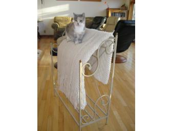 Textured iron beige with gold accents quilt or afghan rack. Like-new condition! This rack will hold 3 afghans easily.