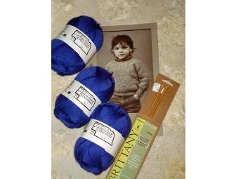 Knit your child, size 2 - 4, a beautiful sweater. This kit contains everything you need: three skeins of royal blue wool yarn, sweater pattern and birch needles. Pattern directions are for a size 2 - 12; the three included skeins are enough for a size 2 - 4 sweater.