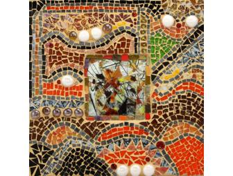 The name “Elder Tree Spirit came to me once I was completed with the piece. Imagination is a big part of my work and why I love creating. Abstract mosaics can be interpreted in may ways; warmth and “spirit” are often shown in the mosaics I make. As a person who grew up in the 60’s and 70’s I can still remember the vivid colors used for tie dyed shirts, peace symbols and posters. Much of my work is bright, colorful and reminiscent of the early 70’s style.