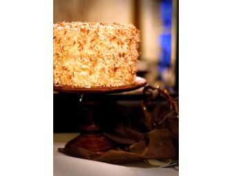 All natural ingredients makes this cake amazing: Moist and creamy vanilla cake infused with real coconut essence and coconut flakes, then filled and frosted with cream cheese frosting and garnished with toasted coconut flakes. Yummmm! This cakes serves 10 to 12 generous portions.