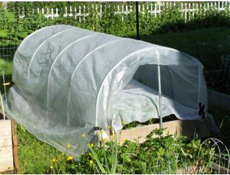 Extend your growing season! Garden Hoop House Kit for a 4'x8' raised garden bed complete with: 5 metal hoops, greenhouse plastic, straps for attaching to raised bed frame and clamps to attach plastic to hoops.  (Don't be confused - Scratch and Peck Feeds mills locally sourced livestock feeds, it's true, but we also manufacture these Garden Hoops under our Hoopla label!)