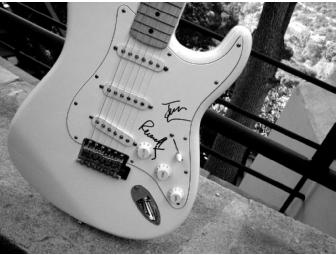 Arctic White Fender Stratocaster autographed by Russell Brand and Jonah Hill from "Get Him To The Greek".