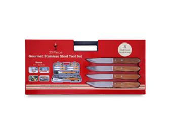 20 piece Gourmet Stainless Steel Tool Set - perfect for grilling!