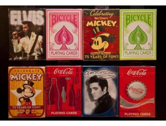 For the card player, set up bridge or poker games. Two dozen (24) BEE Club special playing cards plus an assortment of commemorative decks produced by the US Playing Card Company. Save for your collections playing cards featuring Elvis, Coca-Cola, Mickey Mouse and more.