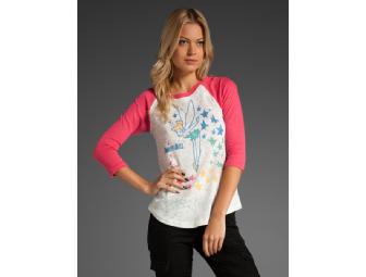 Junk Food Clothing's "Tinker Bell" women's raglan long sleeve.  Creamy white with pink sleeves.  Cotton/poly blend.  Women's size medium.