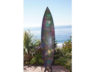 This surfboard was painted by kids at one of the Surfers Healing events.
