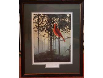 A signed, matted and framed print of "A Special Love Song - Cardinal" by wildlife artist Richard Eyrise 1934-2005 This is the limited edition number 361/600.