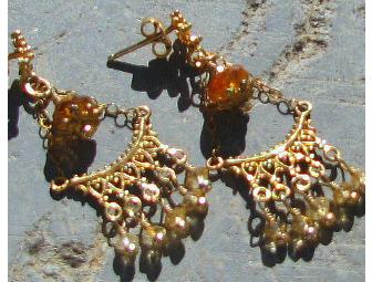 Chandelier Earrings by Artafact. Vermeil 24k over sterling silver with citrine and carnelian drops.