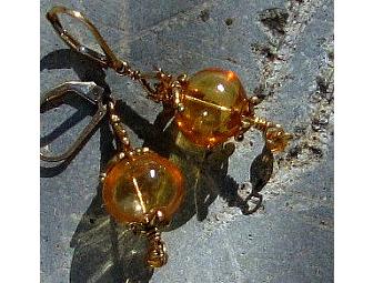 Amber Murano/ Venetian. Handblown glass with vermeil (24k gold over sterling silver) findings and carnelian drops.