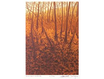 "Golden Grove" a 6-color linoleum block print