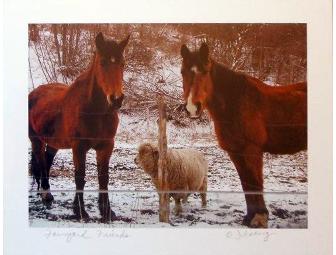 Framed 8x10 print of two horses & a sheep