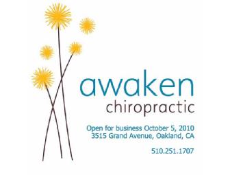 Kendra Burke of Awaken Chiropractic offers an initial chiropractic exam, consultation and first adjustment with this certificate. Located in Oakland, CA.