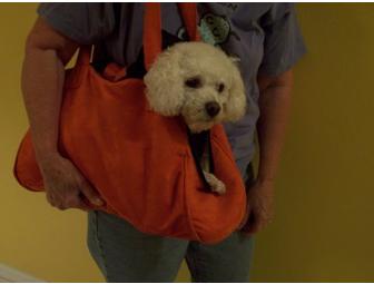 Large Orange Ollie Bag for a fluff up to 20 Lbs. Top has netting for comfort