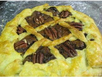 This Rustic Chocolate Pecan Tart from All Good Bakers of Albany is made with organic, fair-trade rapadura sugar, organic butter, pecans from Our Daily Eats of Delmar, dark (vegan) chocolate chips and locally milled, organic flour. Perfect for your Holiday gatherings!