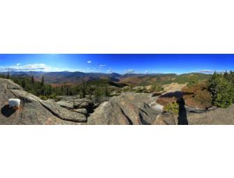 A panoramic photographic print of the central White Mountains of New Hampshire from Mt. Crawford, just off the Davis Path (one of the earliest routes to Mt. Washington). Printed on professional lustre paper with image size approximately 5.5"x18".