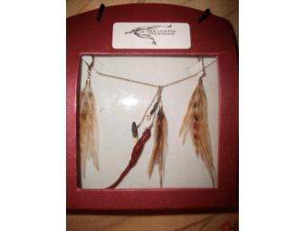 Beautiful customized, natural feather and bone, gold filled necklace set that is sure to turn heads this holiday season! The whisper-soft tawny feathers gently graze your neck and the curve of your cheek, while the sizable coral twig anchors the matching feathered necklace that swings from your neck.