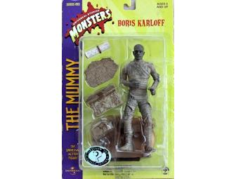 This 8" action figure features the amazing likeness of Boris Karloff and is fully poseable with 12 points of sculpted articulation. Accessories include a pyramid stone base with an engraved name plate, hieroglyph tablet, scroll and scroll box.