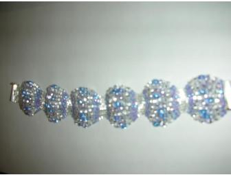 Like a delicate chain of snowflakes on your wrist. Beautiful light blue and silver beads in a unique pattern. Bracelet plays with the light to sparkle and draw attention to YOU. To be viewed only at the Royal Bash.