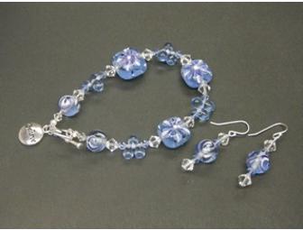 Bracelet and matching earrings made with sterling silver, swarovski crystals and glass beads.
