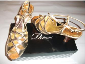 Delman Gold Leather "Jackie" Dress Sandals, size 9. New in box