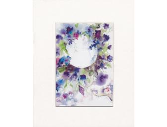 This gorgeous watercolor print by the donor artist is 8"x 10" matted and framed.