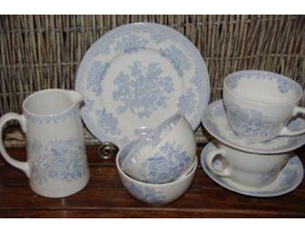 English Burleigh ware Breakfast set in Asiatic Pheasant pattern includes 2 plates, 2 breakfast cups and saucers, 2 french bowls and 1 pint tankard.