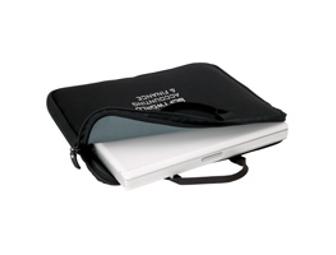 Slip your laptop into this black sleeve where it will stay perfectly protected. The zippered compartment holds a 17" laptop computer and has handles that make it convenient to carry wherever you go.