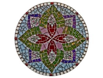 Media: Stained glass, textured mirror, tempered glass, glass gems, vitreous glass tile