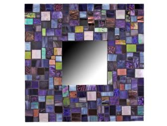 The mirrored and iridized glass create shimmery reflections all around the center mirror.