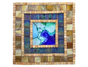 “Glacial Blue” is as much about negative space, the shapes in between the forms that make up the mosaic. I was interested in the transitory beauty in the shapes of melting ice. Noting the translucent layers of ice and how light converts to color are the perfect subjects for glass.