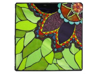 Media: Stained glass, Van Gogh glass, gold and orange glass, glass rods, glass beads, ceramic gems, glass button