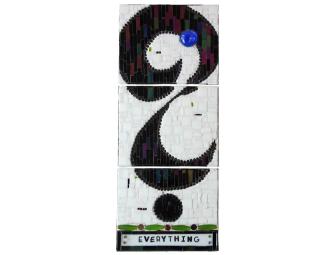 Media: Vitreous tile; stained glass; glass beads; silver discs; zinc bb pellets; blown glass glob; paper; MDF base