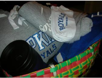 Hopkins Superfans, rejoice! Here's a great basket full of Hopkins Spirit Wear. Basket contains: Gray sweatshirt and gray sweatpants, size medium; white socks; blue scarf; thermal coffee mug. Awesome BONUS: basket includes a $10.00 gift certificate to Gold Nugget Tavern and Grille!