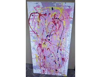 This 24" x 40" acrylic painting on canvas will look beautiful in the right home. It is unframed but wired for hanging. Abstract painting with pink, red, blue and gray paint