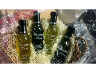 This basket includes 2 bottles of Extra Virgin Olive Oil (1 Italian and 1 Meyer Lemon) and 2 bottles of Balsamic Vinegar (1 is Raspberry and 1 is Fig)