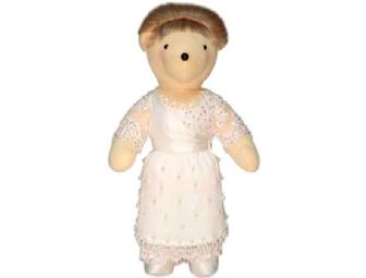 You’ve all heard about the man who came to dinner and the guest who wouldn’t leave, but what about the girl who came to supper? Well, she was the title character in the appropriately titled The Girl Who Came to Supper, a charming 1963 Noël Coward musical based on the Terrence Rattigan play The Sleeping Prince. The girl in question is Mary Morgan, played by musical comedy star and future television mom Florence Henderson. In a show-stopping number, Mary does a one-woman version of the operetta-within-the-operetta called The Coconut Girl. The dress worn by our Mary is a facsimile of the original. The 1911-style hobble-skirt confection has an under-layer of re-embroidered lace spangled with hand-sewn sequins and beads. Her crème silk crepe de chine over-skirt is literally dripping in pearl dangles and features a double row of pearl fringe at the hem. The goddess style bodice has a one-shouldered bias cut and is closed with tiny silk-covered buttons. Her blonde hair is upswept with matching pearl clips, while her custom cream silk satin spool-heeled pumps give a touch of elegance – enough elegance, one presumes, to allow our gal to stay for supper!