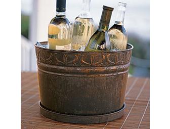 Keep everybody happy! Just fill this copper-rubbed, metal bucket by Willow House (formerly Southern Living) with ice and cool drinks at your next party! Or this bucket can pull double duty as a planter or hold kindling by the fire. Not food safe. The included drip tray collects condensation. Bucket is 13" diameter x 9" tall; tray is 11 3/4" diameter x 1 1/8" deep.
