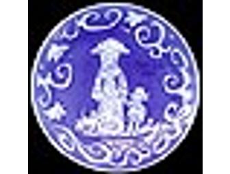 A Royal Copenhagen Porcelain Plate titled Mother's Day 1971. Colors are blue and white, and is 6" in diameter.