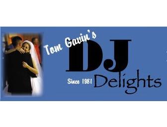 Four hours of musical entertainment by one of Tom Gavin's DJ Delights' professional disc jockeys. Since 1981 Tom Gavin and his team have provided music for thousands of weddings, parties, and celebrations. They are proud of their outstanding reputation and passion for event quality, affordability, and professionalism. Customize your music selections on their interactive website then sit back and let Tom Gavin's DJ Delights create a successful party.
